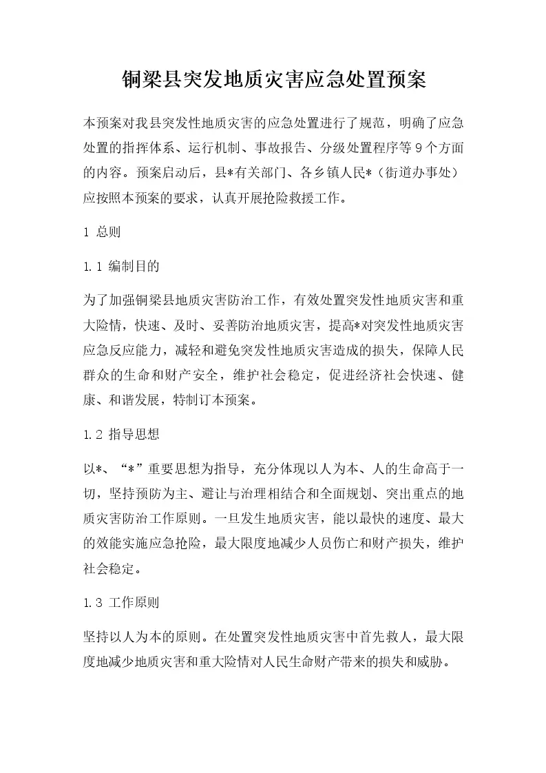 铜梁县突发地质灾害应急处置预案