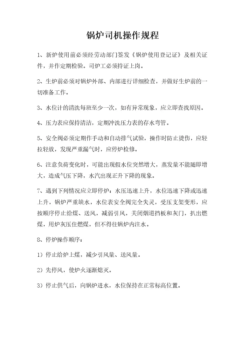 锅炉司机操作规程