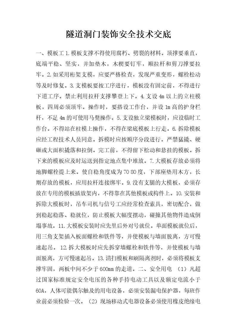 隧道洞门装饰安全技术交底