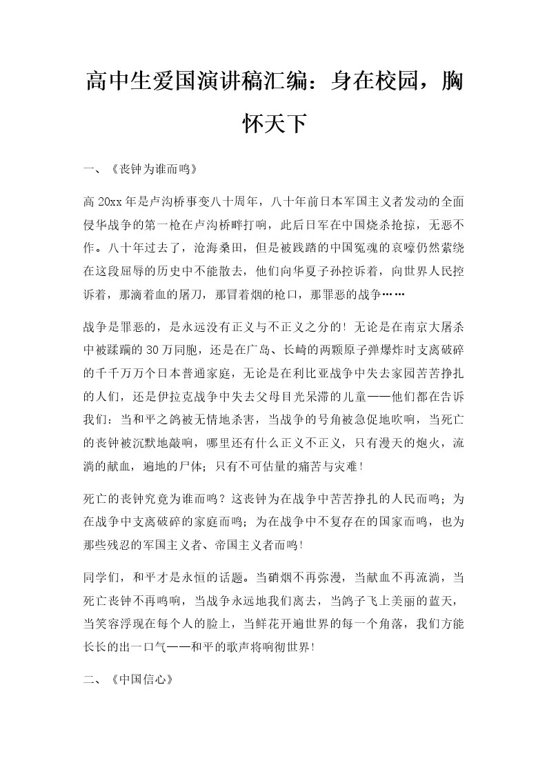 高中生爱国演讲稿汇...