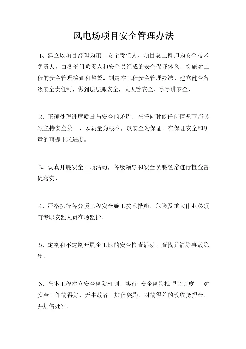 风电场项目安全管理办法