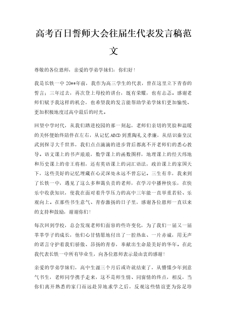 高考百日誓师大会往届生代表发言稿范文