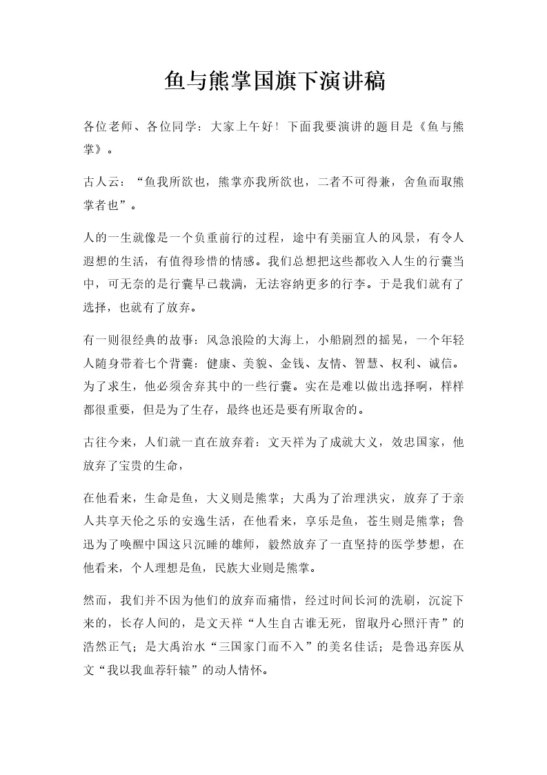鱼与熊掌国旗下演讲稿