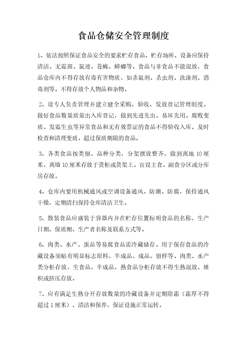 食品仓储安全管理制度
