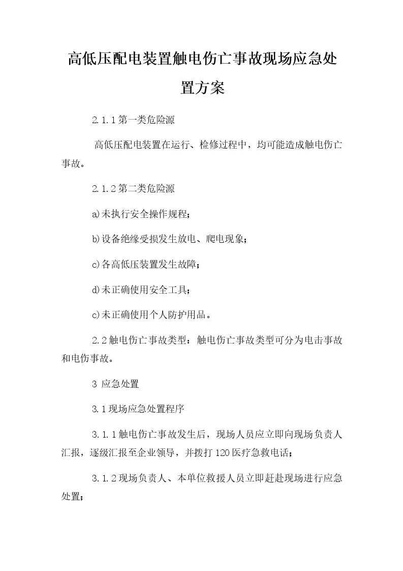 高低压配电装置触电伤亡事故现场应急处置方案