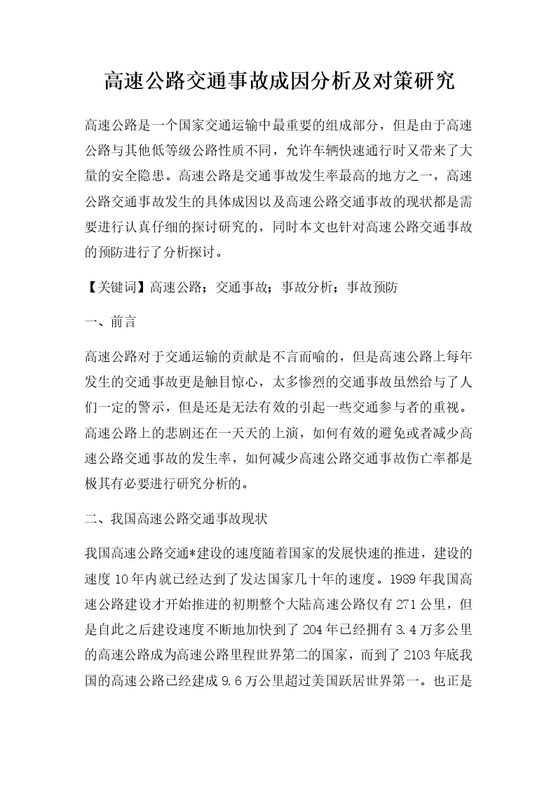 高速公路交通事故成因分析及对策研究