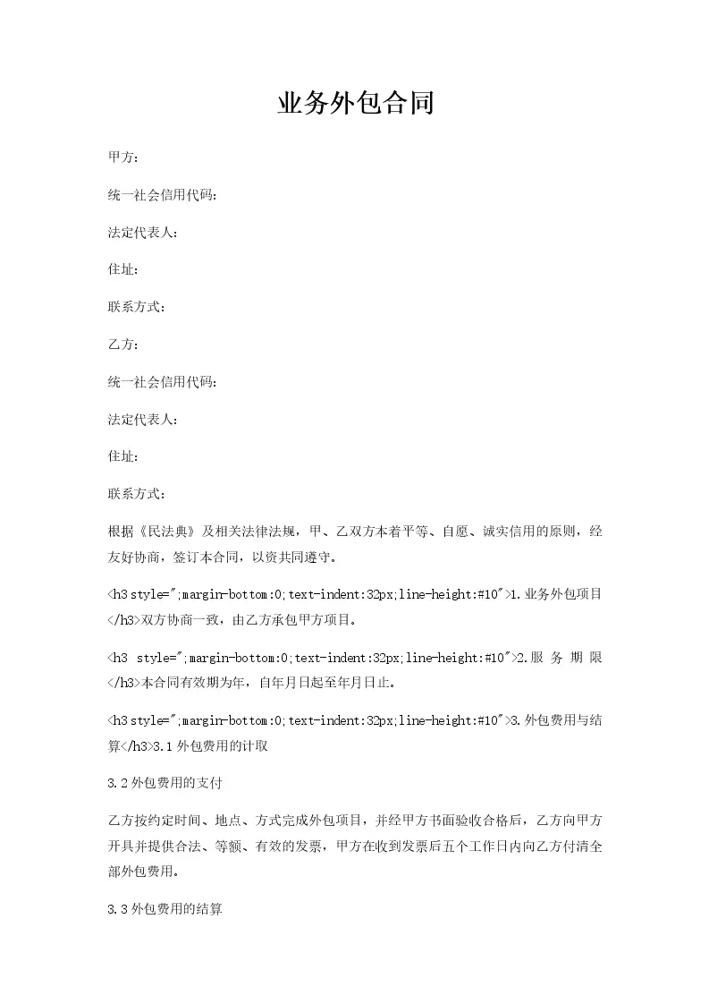 业务外包合同