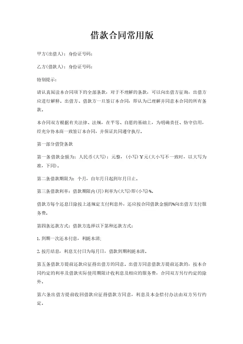 借款合同常用版