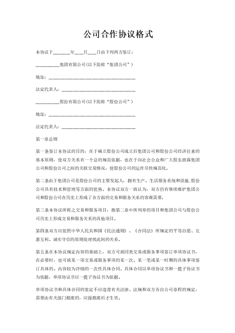 公司合作协议格式