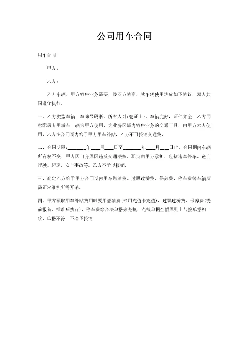 公司用车合同