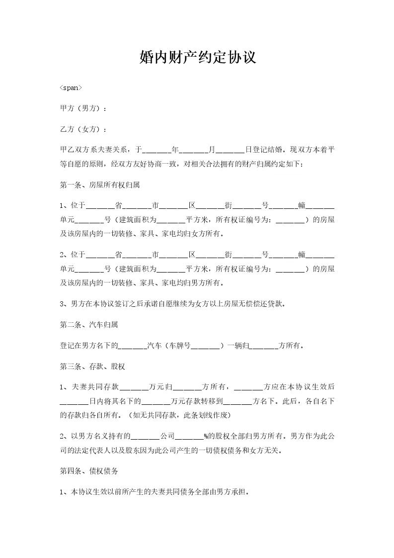 婚内财产约定协议