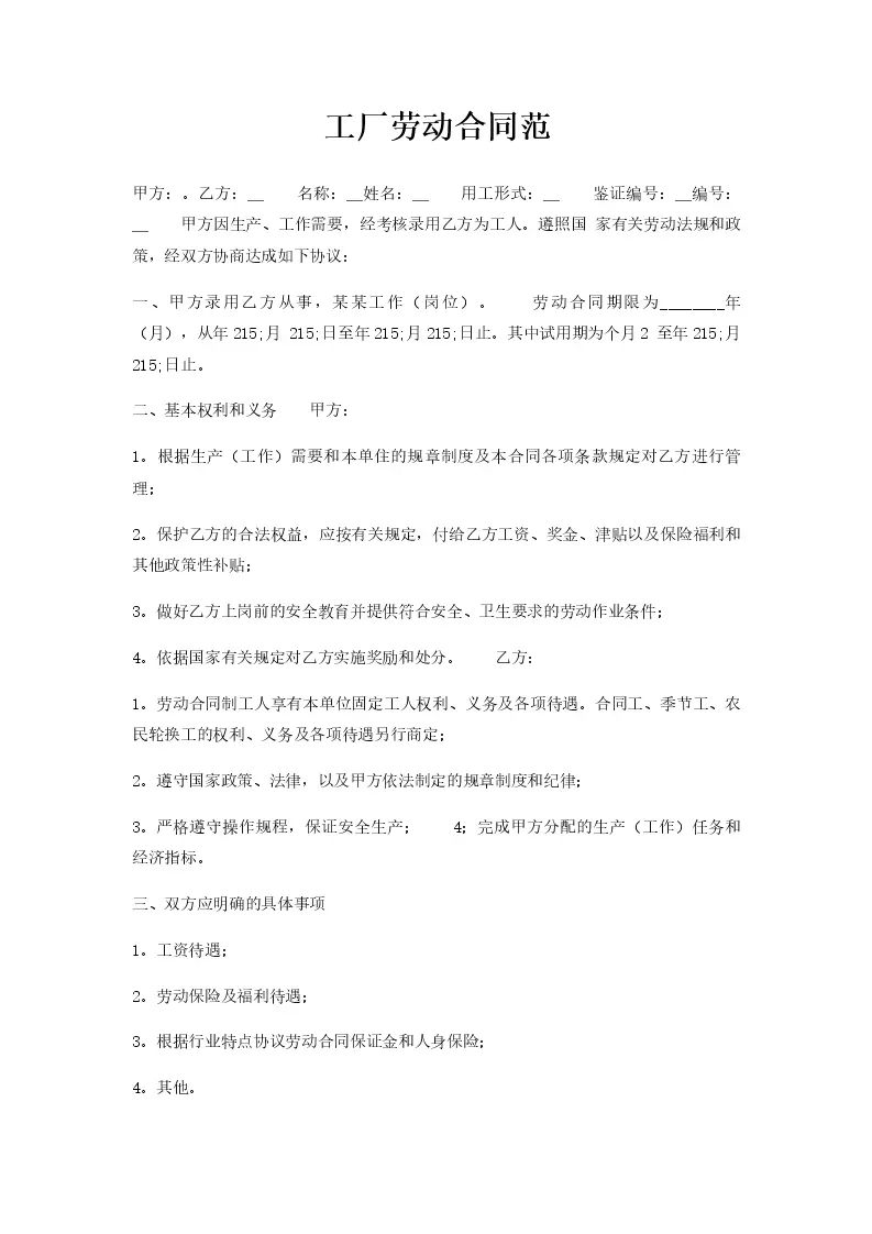 工厂劳动合同范