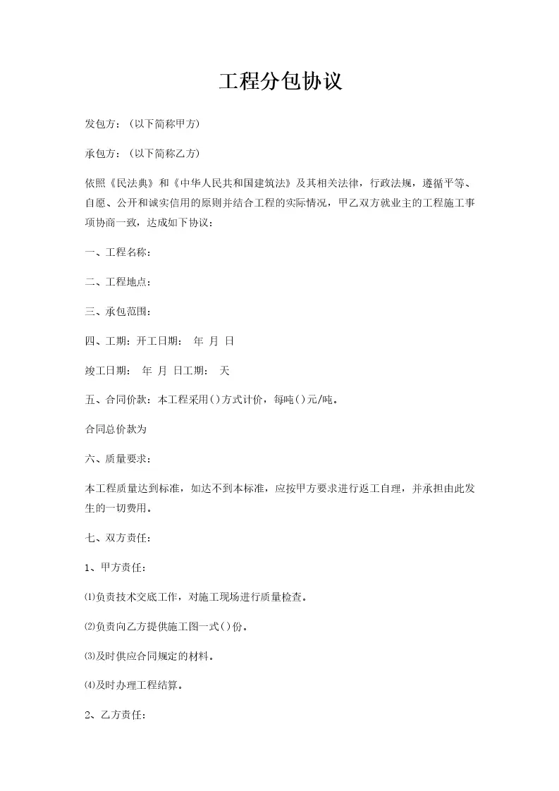 工程分包协议