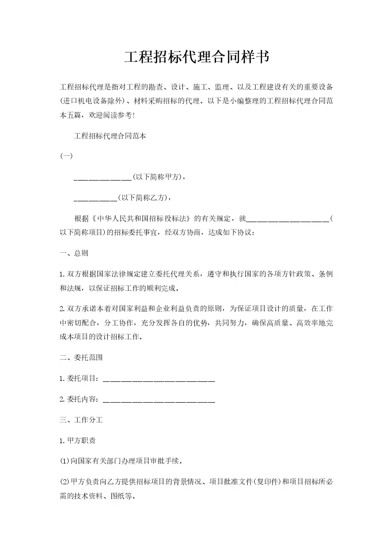工程招标代理合同样书