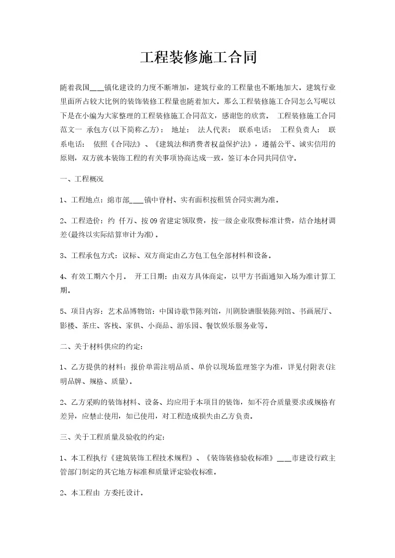 工程装修施工合同