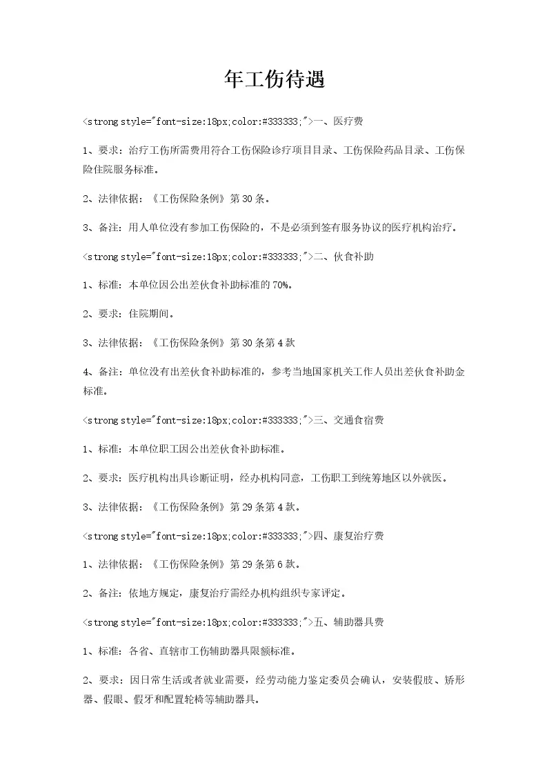 年工伤待遇