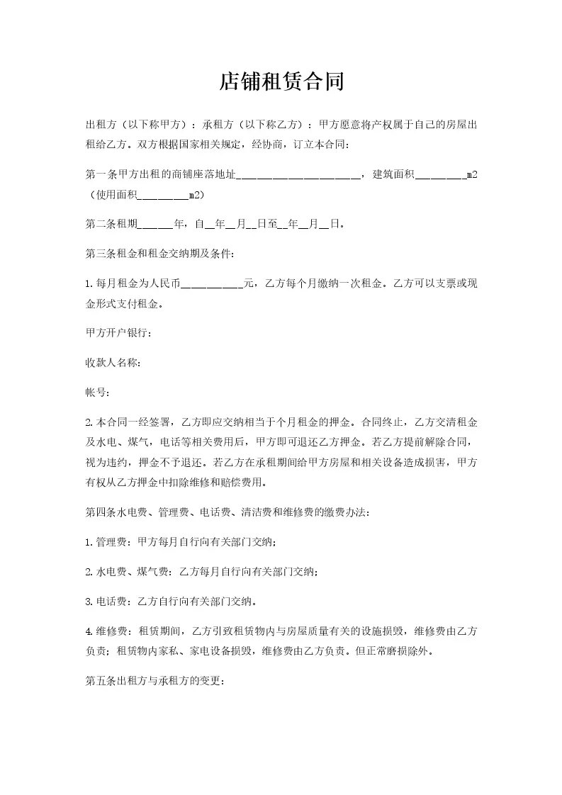 店铺租赁合同