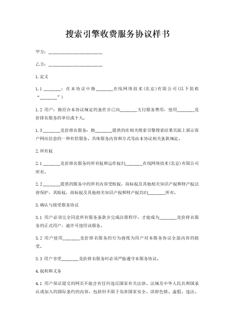 搜索引擎收费服务协议样书