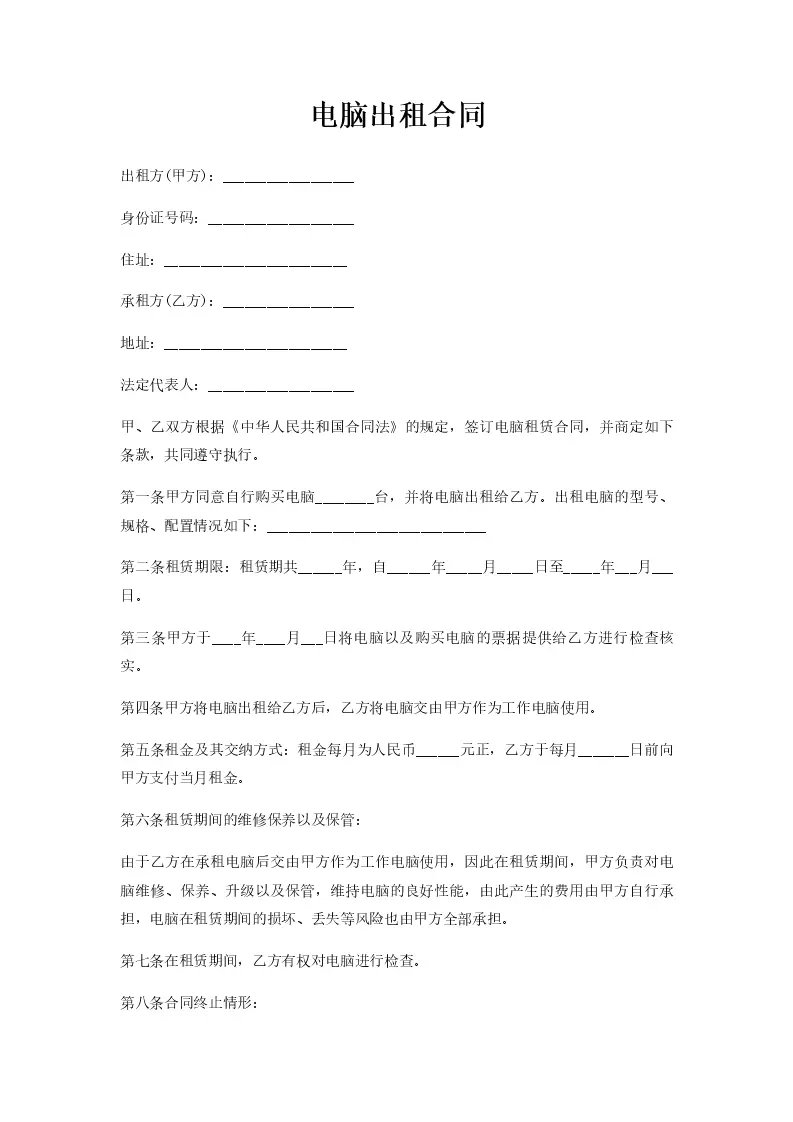 电脑出租合同