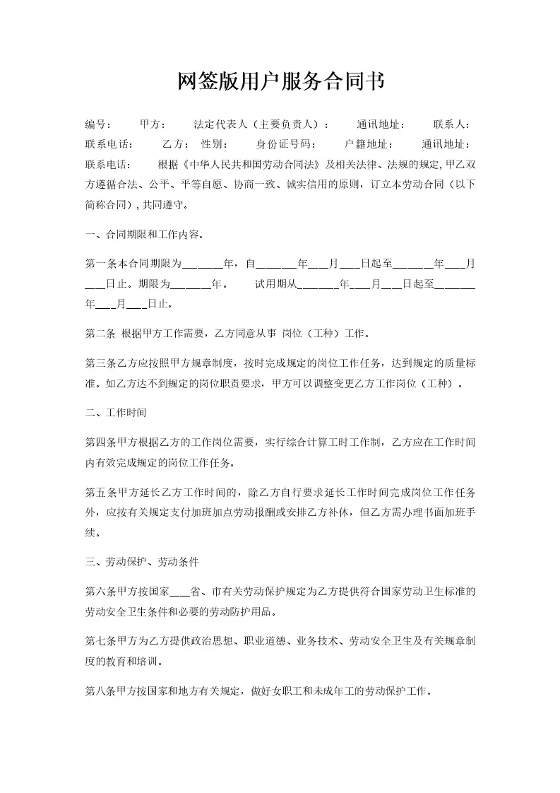 网签版用户服务合同书