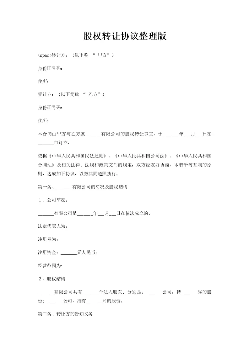 股权转让协议整理版