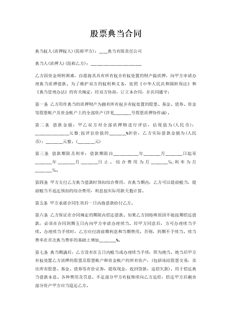 股票典当合同