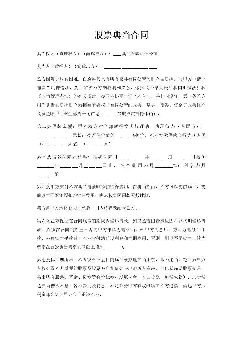 股票典当合同