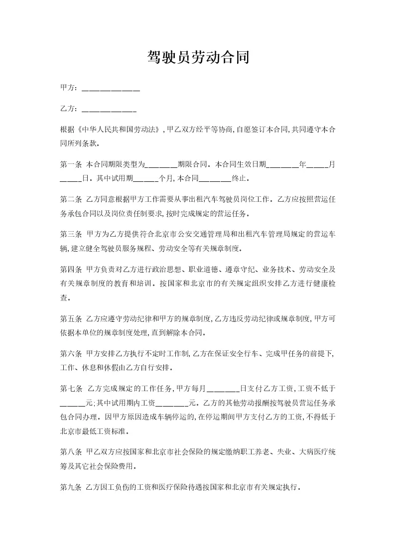 驾驶员劳动合同