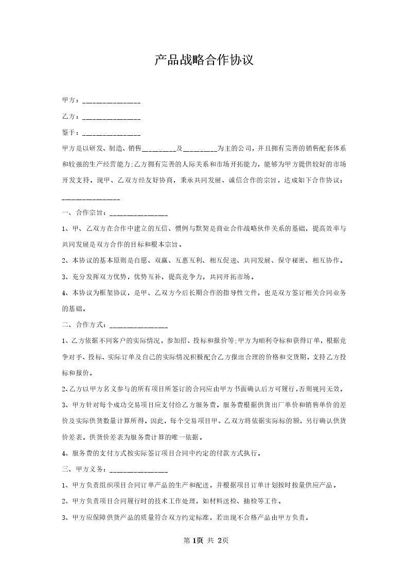 产品战略合作协议
