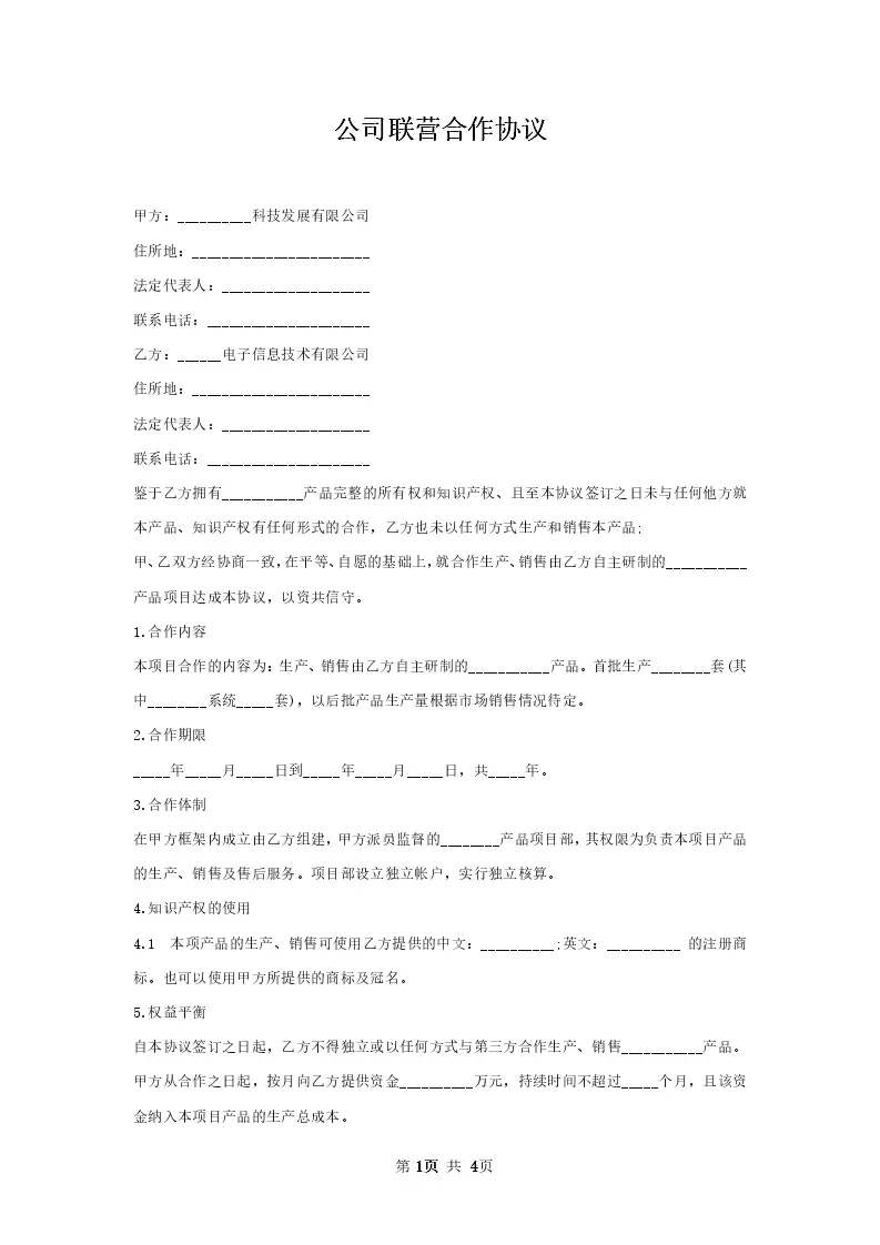 公司联营合作协议