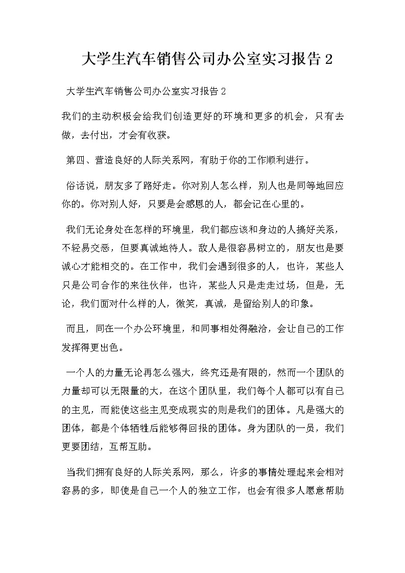 大学生汽车销售公司办公室实习报告2