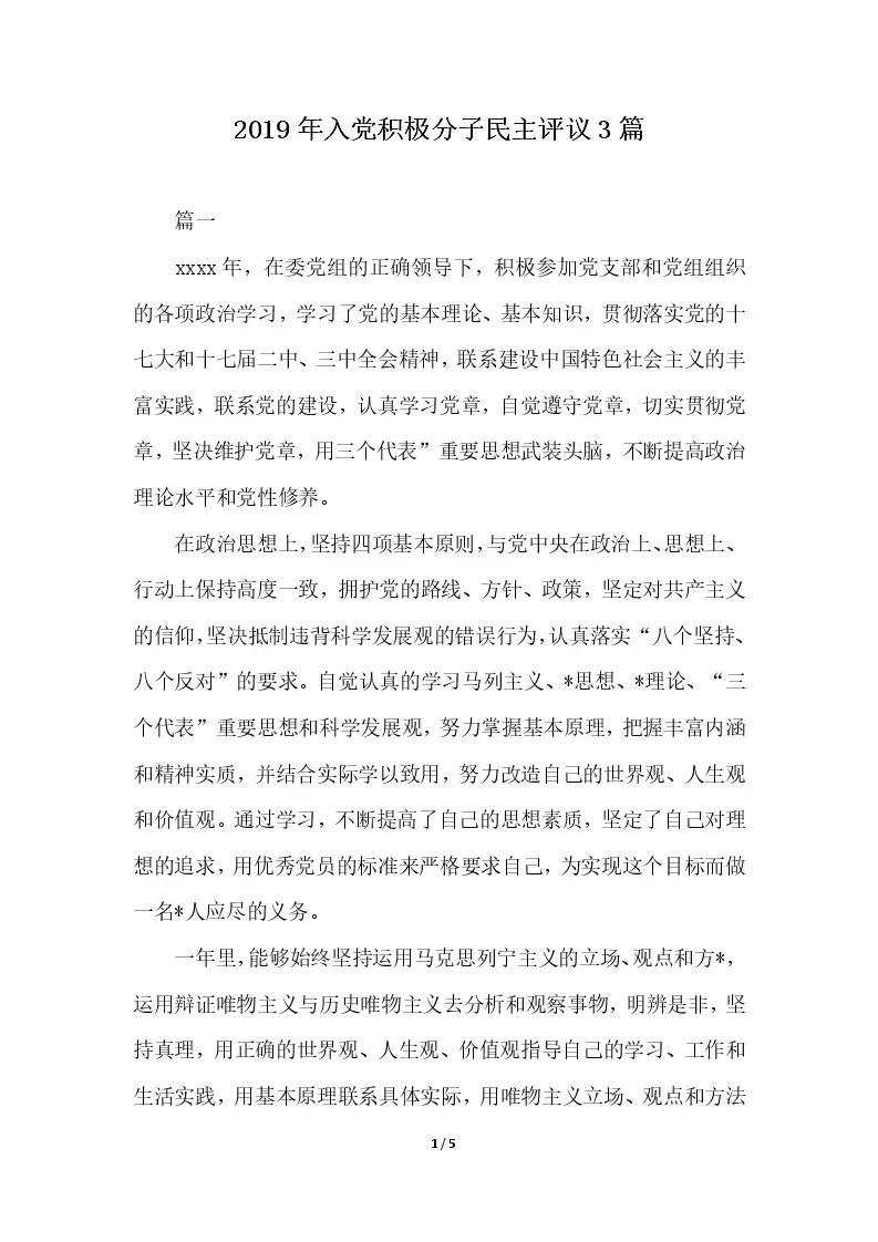 入党积极分子民主评议3篇