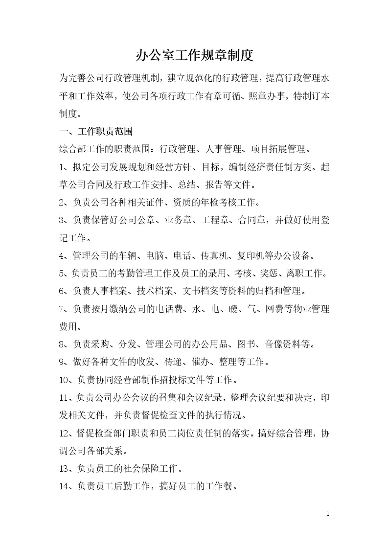 办公室工作规章制度