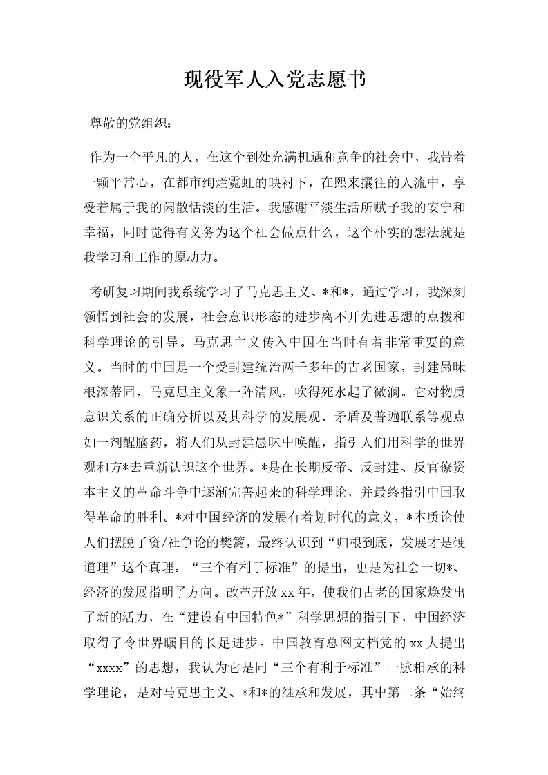 现役军人入党志愿书