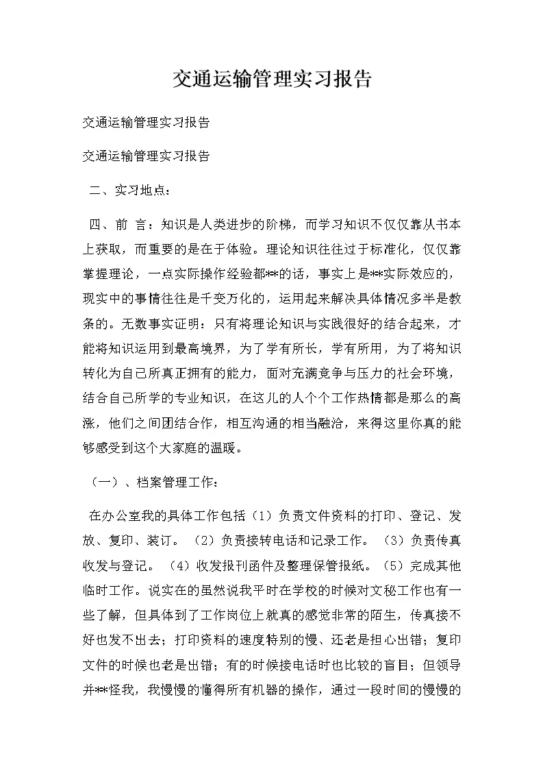 交通运输管理实习报告