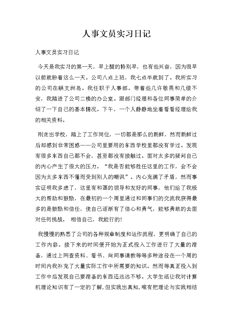 人事文员实习日记