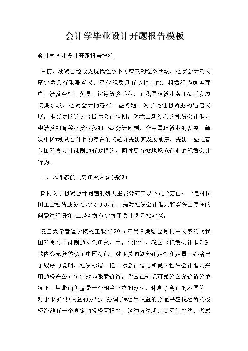 会计学毕业设计开题报告模板