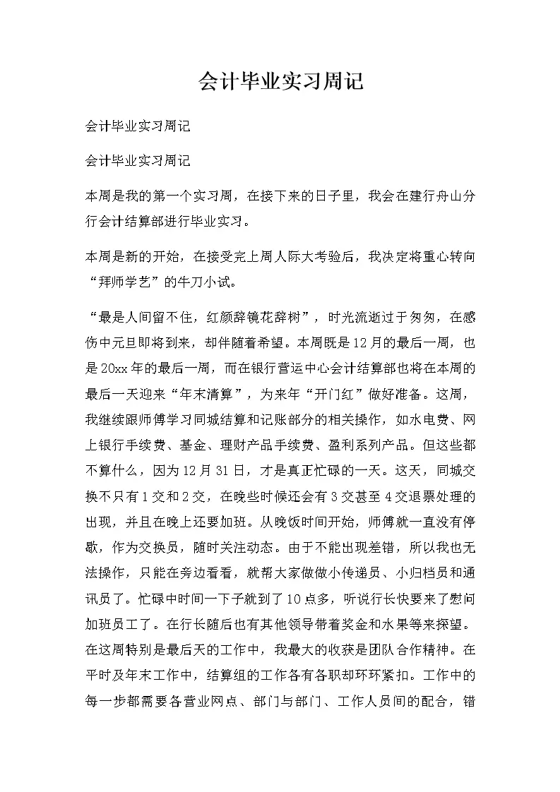 会计毕业实习周记