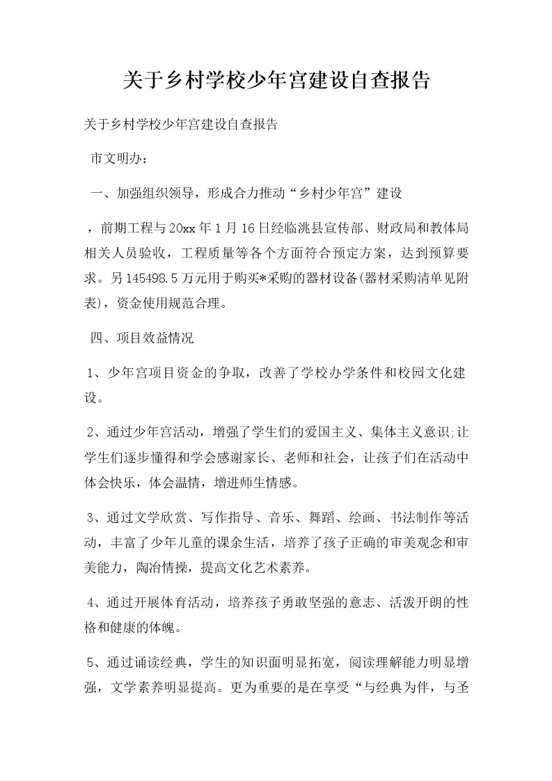 关于乡村学校少年宫建设自查报告