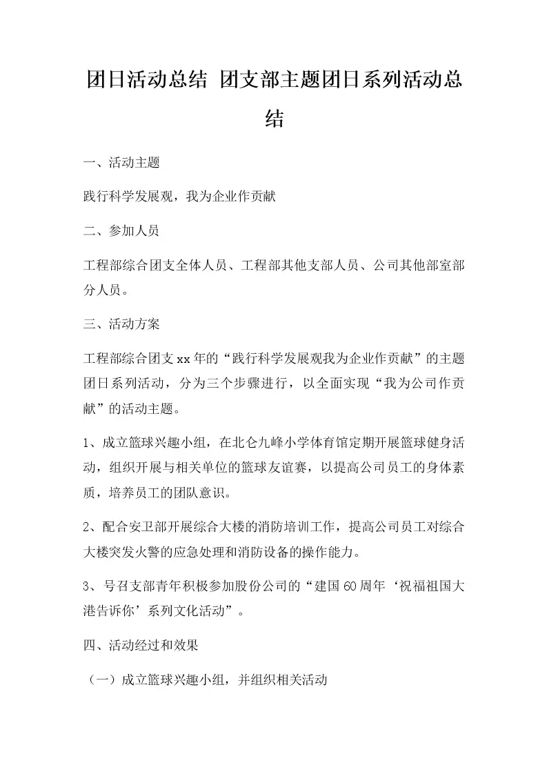 团日活动总结 团支部主题团日系列活动总结
