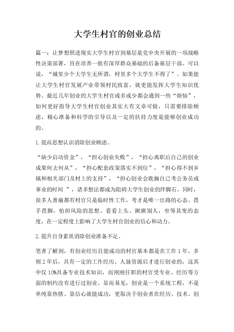 大学生村官的创业总结