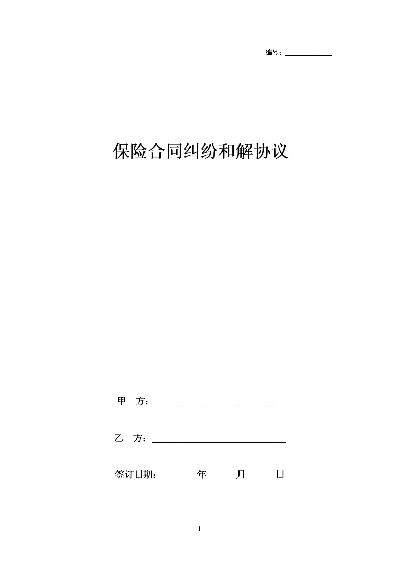 保险合同纠纷和解合同协议书范本模板