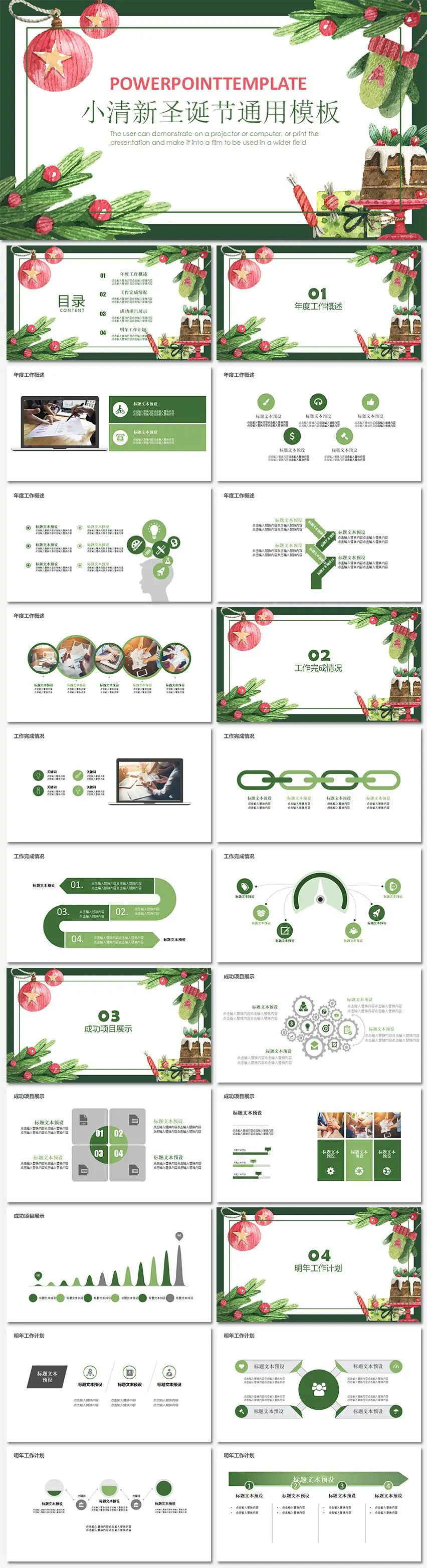 小清新圣诞节通用工作总结PPT模板
