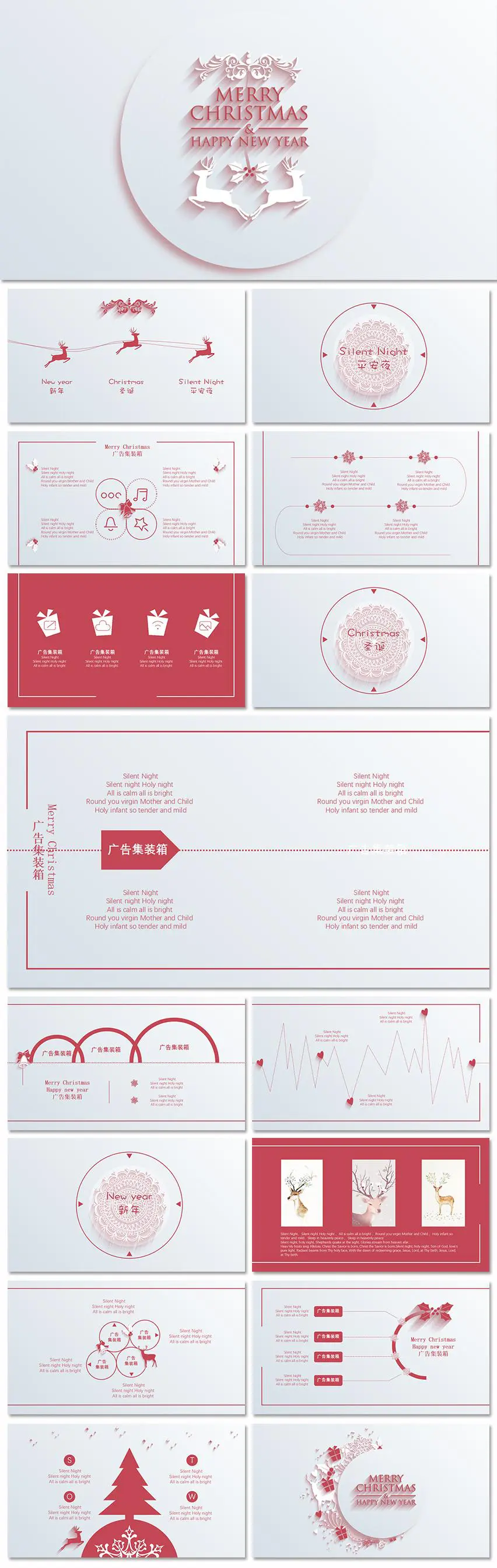 简约长阴影驯鹿圣诞节PPT模板