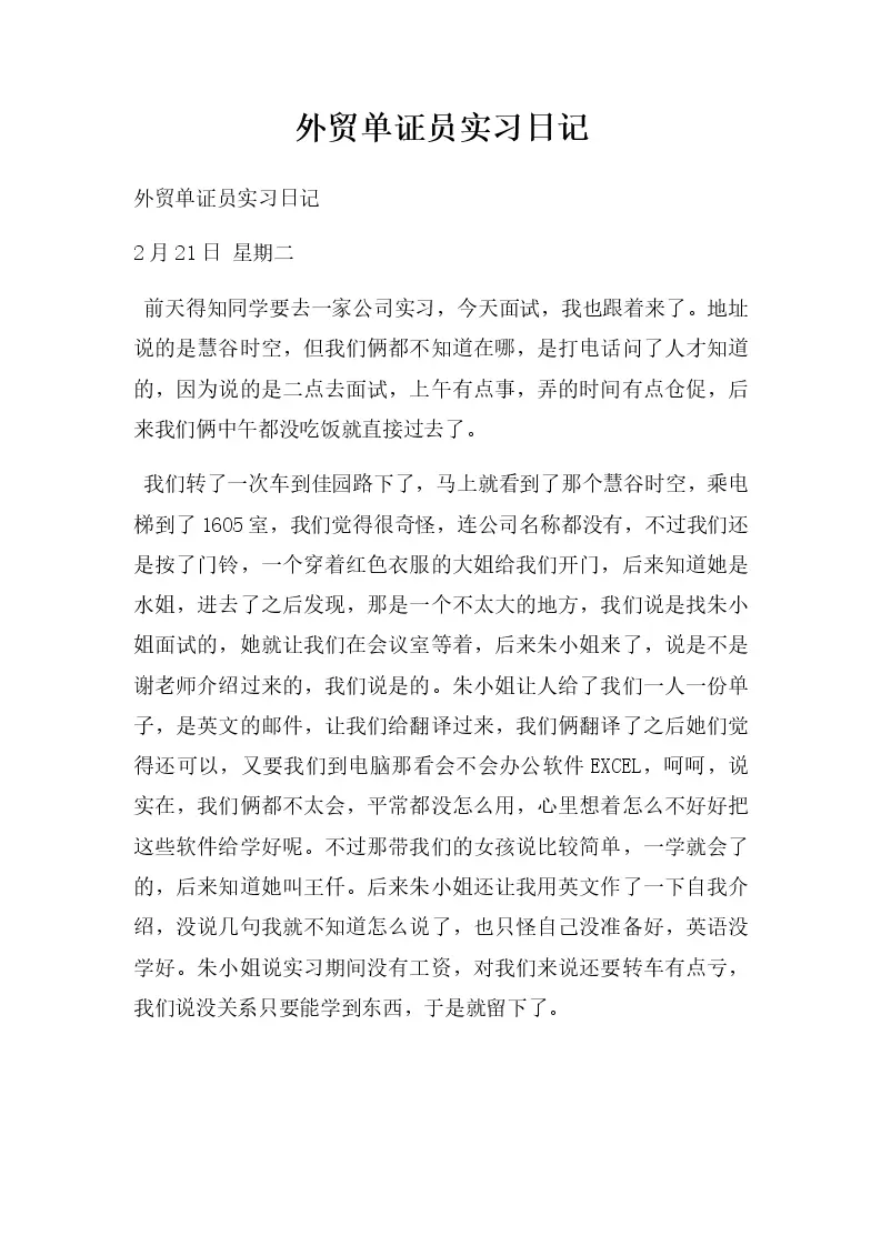 外贸单证员实习日记