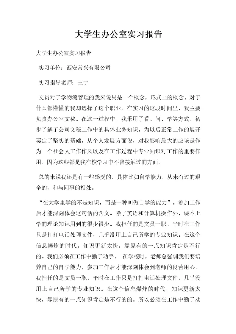 大学生办公室实习报告