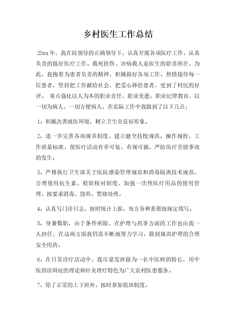 乡村医生工作总结