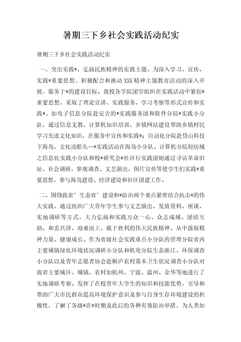 暑期三下乡社会实践活动纪实