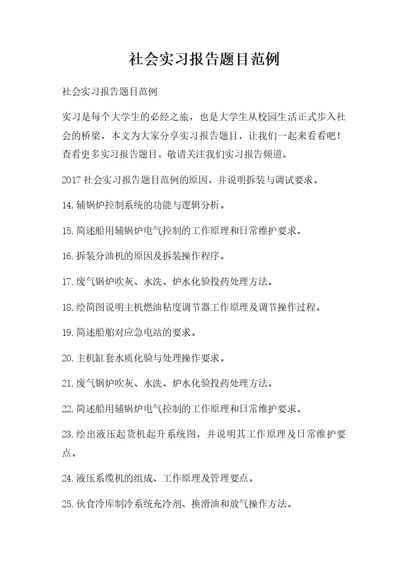 社会实习报告题目范例