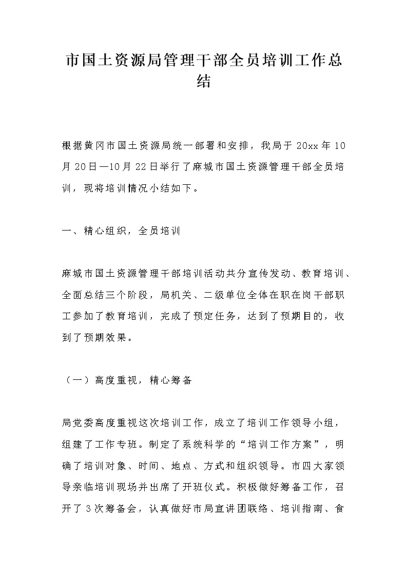 市国土资源局管理干部全员培训工作总结